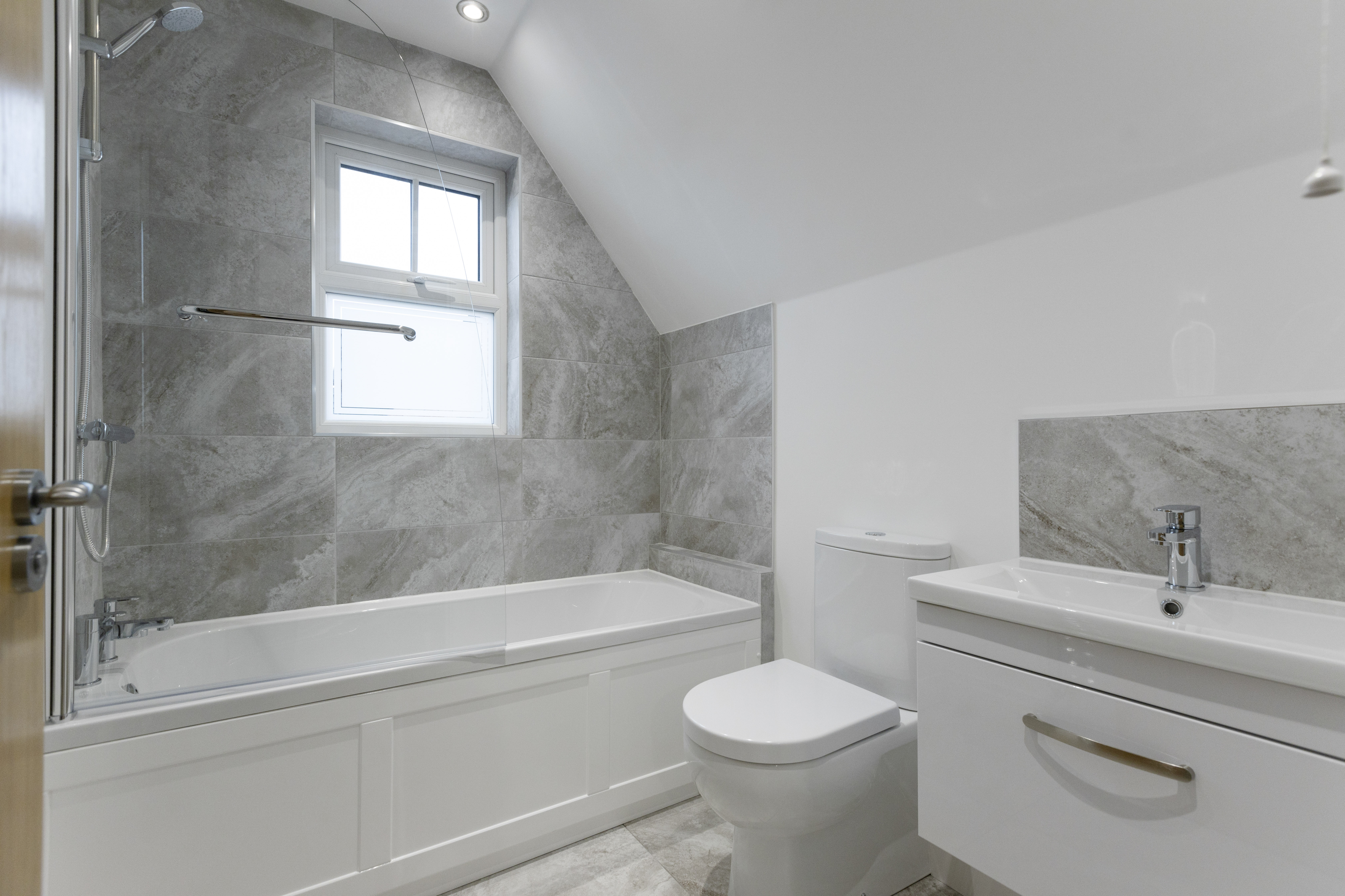 All wall and ceiling surfaces painted white throughout with satin finish to woodwork.