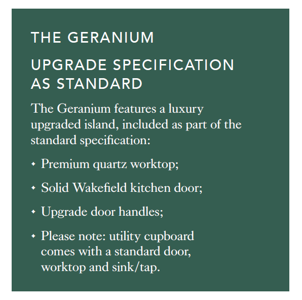 The Geranium turnkey home is complete with the following upgrade specification as standard: