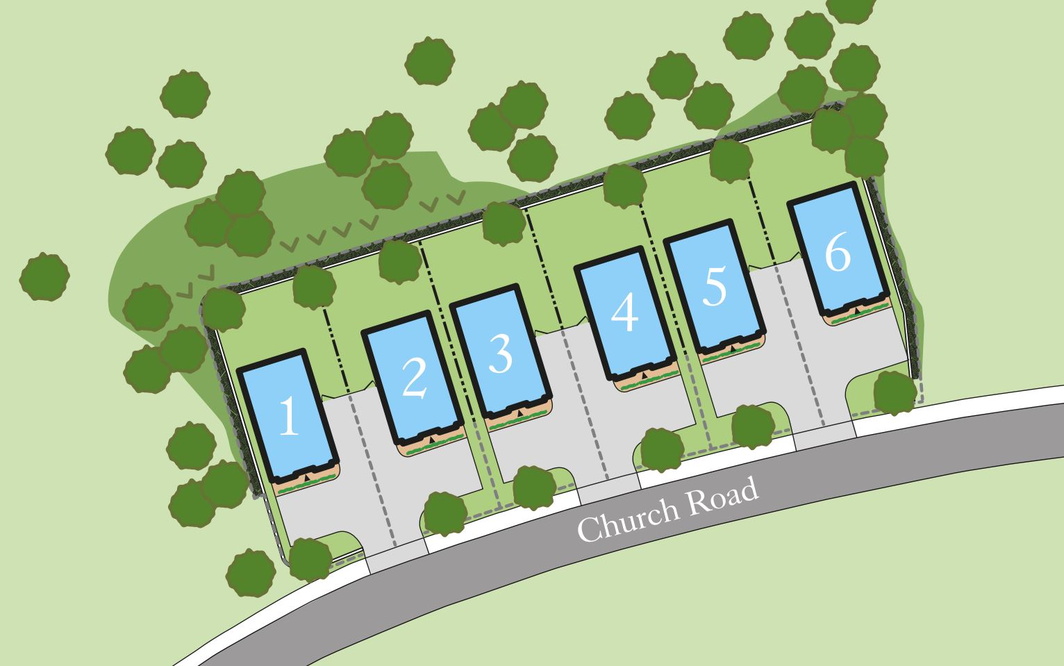 The development at Church Road consists of 6 new detached low carbon, single story, 3 bedroom turnkey bungalows, each with a renewable energy, air source heat pump.